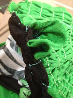 I also didn’t bring a pin cushion, and that many people and clothes at one table resulted in many, many needles on the floor. I dug through my suitcases, searching for what I could use, and came up with a wrist band from last year’s sport camp. It has been the perfect pin cushion!